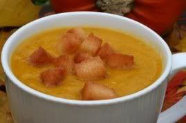 6. Allow the soup to cool slightly, then purée in a food processor or using a hand-held blender. Return to the pan, thin to the desired consistency with water, and check for salt - I always find that soups need more seasoning than I think. Toast the slices of bread and butter them.
